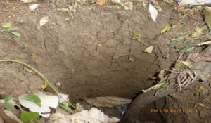 Se observa el horizonte A (marrón oscuro) próximo a la superficie y el horizonte B (marrón claro)